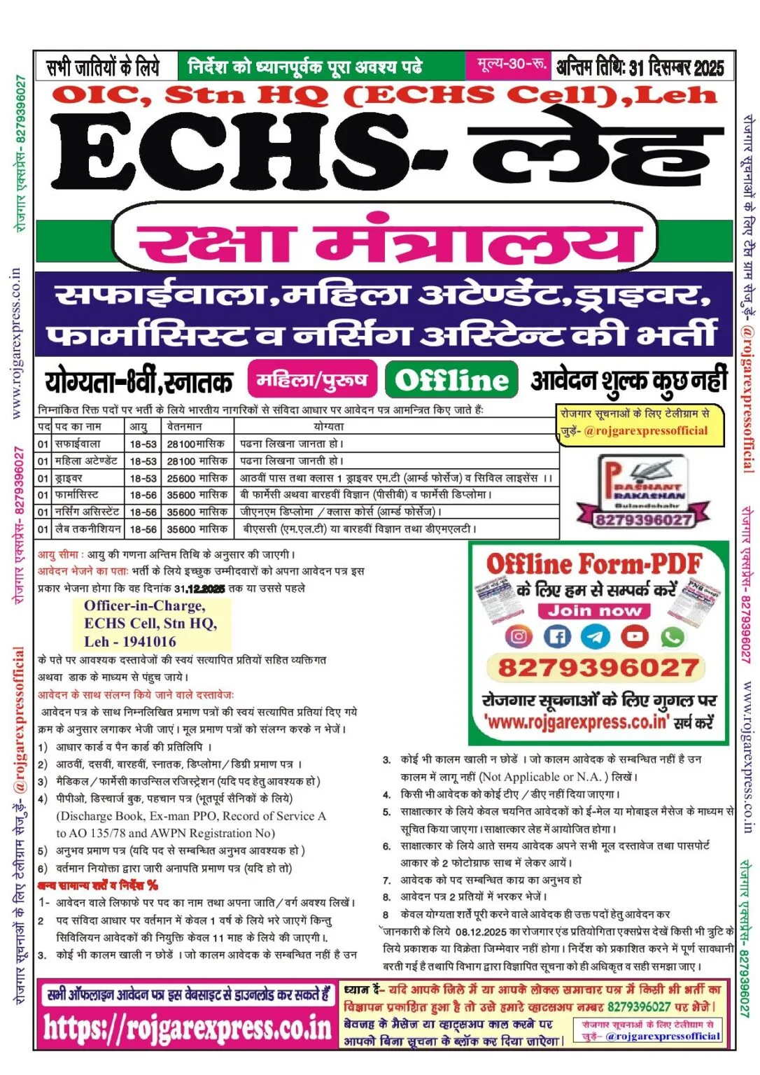 | Department Name | Army Cantt / ECHS Leh Recruitment 2025 |