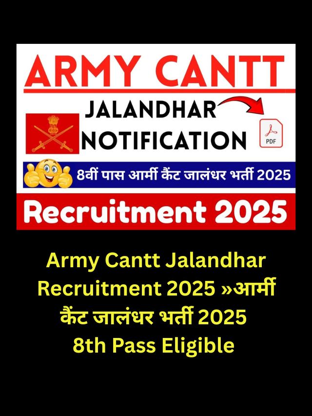 Army Cantt Jalandhar Recruitment 2025 »आर्मी कैंट जालंधर भर्ती 2025 8th Pass Eligible